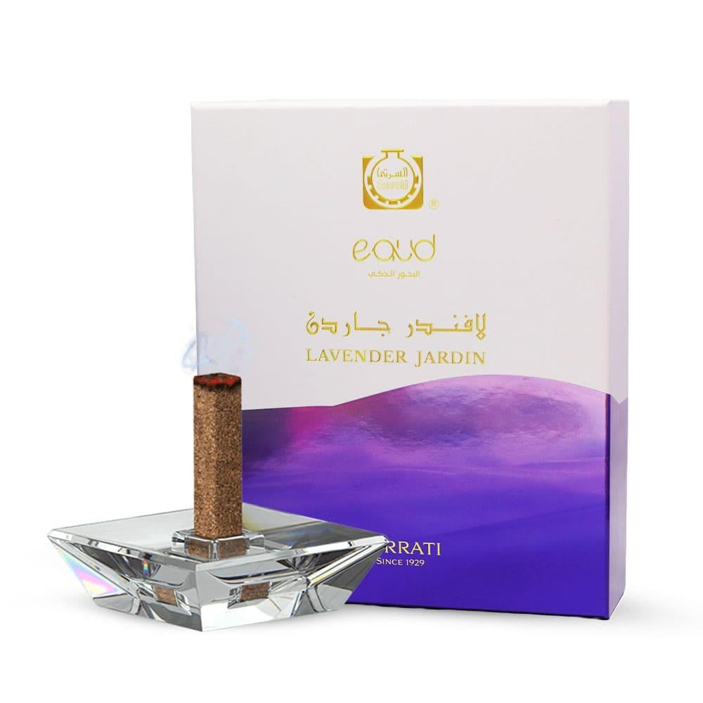 بخور السرتي الذكي اي عود لافندر جاردن هو بخور فاخر مصنوع من خشب العود الطبيعي وزيت اللافندر. يتميز بمزيج فريد من الحارة والبرغموت والليمون والخزامي والياسمين والورد و خشب الأرز كما يتميز برائحة جميلة ودافئة، تُضفي شعورًا بالهدوء والراحة. يدوم هذا البخور طويلاً وسهل الاستخدام.