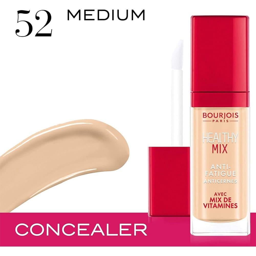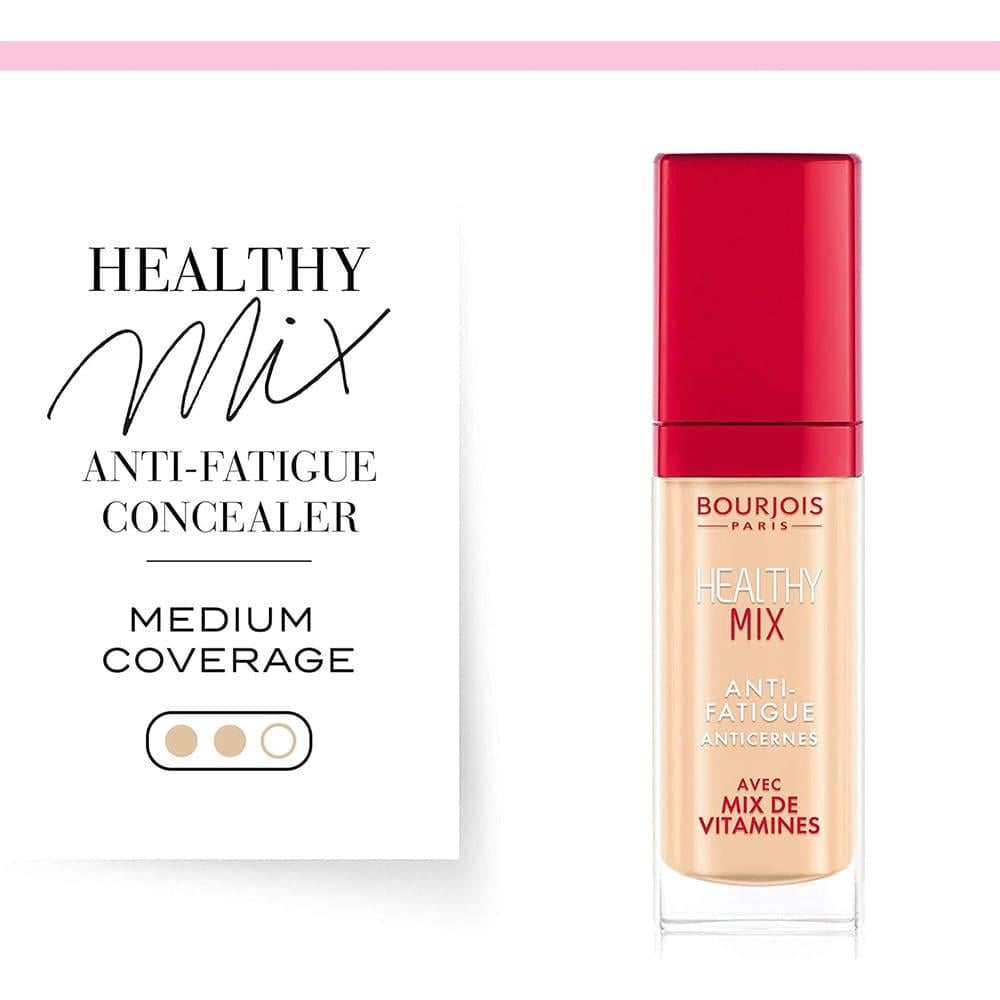 برجوا هيلثي مكس كونسيلر مقاوم للارهاق هو كونسيلر يتميز بتركيبة خاصة تساعد على إخفاء علامات التعب والإرهاق تحت العينين. تركيبته تحتوي على مكونات تساعد في تقليل الانتفاخات والهالات السوداء، مع مزيجها الحصري من فيتامينات C و E و B5 ، خافي العيوب Healthy Mix يمنحك اطلالة بشرة صحية مشرقة.