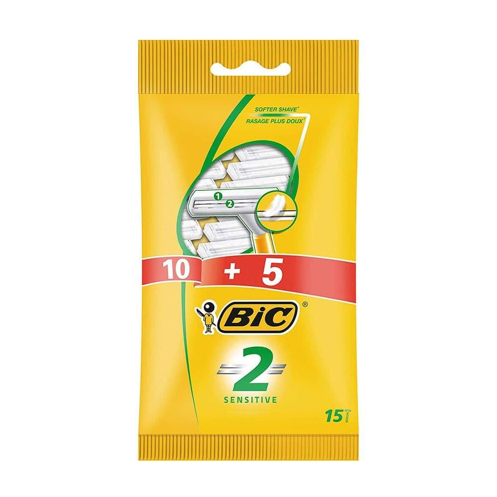 بيك ماكينة حلاقة للبشرة الحساسة شفرتين 15 شفرات حلاقة تستخدم للحصول على حلاقة ناعمة ومريحة.