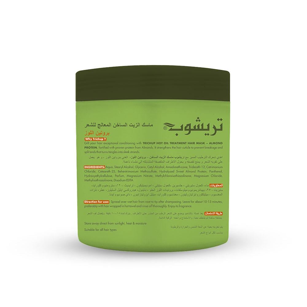 تريشوب ماسك الزيت الساخن المعالج ببروتين اللوز - 500 مل هو منتج يهتم بتغذية وترطيب الشعر، يحتوي على زيت اللوز وبروتين اللوز لتحسين صحة ومظهر الشعر .