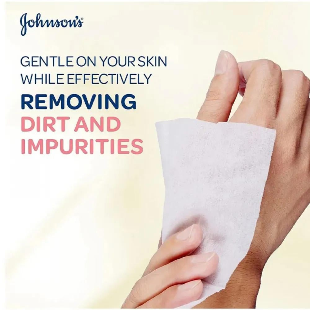 مناديل جونسون الميسيلار تنظف البشرة وتزيل المكياج بفعالية، حتى الماسكارا المقاومة للماء، بتركيبة خالية من الكحول والعطور ومناسبة للبشرة الحساسة.
