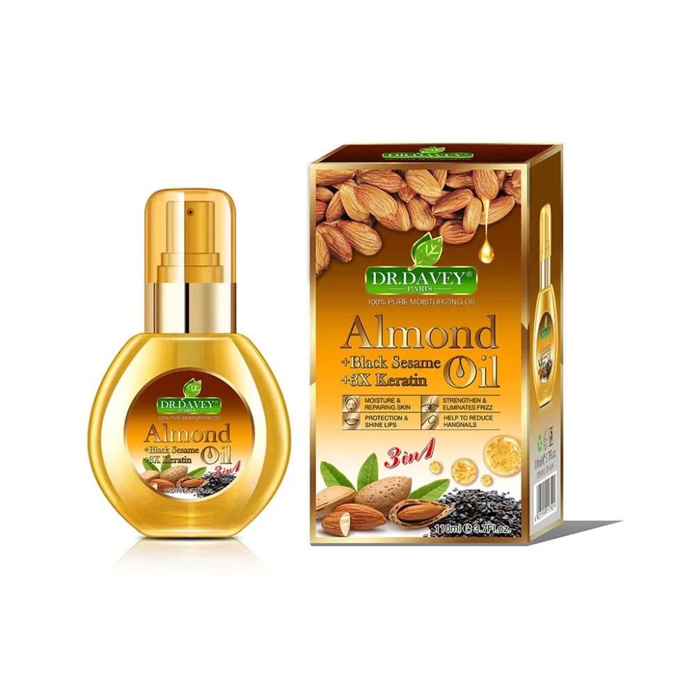 زيت اللوز + السمسم الأسود بالكيراتين من دكتور ديفي مزيج مثالي من زيت اللوز وزيت السمسم الأسود المغذيين مع إضافة الكيراتين، وهو مصمم لتحسين صحة الشعر وتغذيته بعمق.