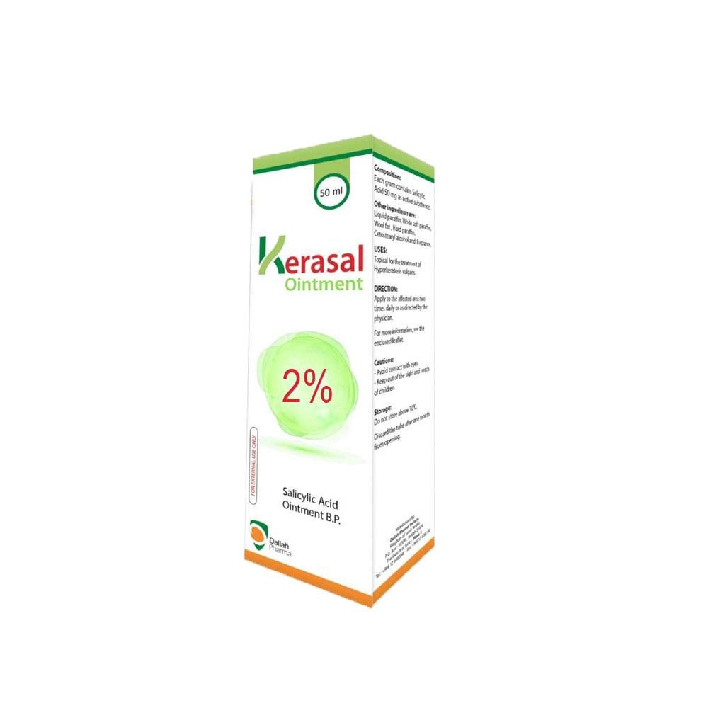 ✅ كيراسال هو مرهم علاجي يحتوي على حمض الساليسيليك بتركيز 2%، المعروف بخصائصه المقشرة والمرطبة، حيث يساعد على إزالة الخلايا الميتة وتنعيم الجلد الخشن.