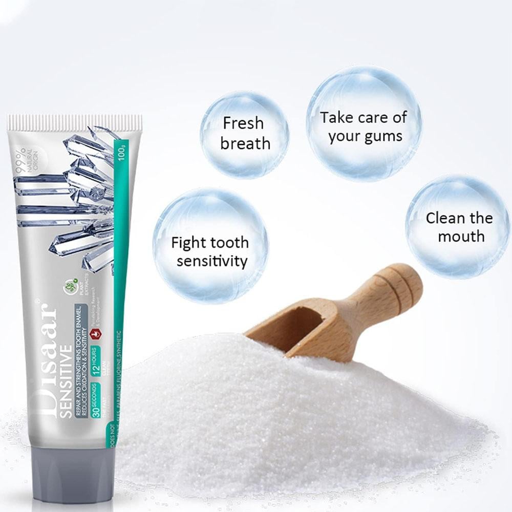 - يحتوي على مكونات تساعد في تخفيف حساسية الأسنان ومنع تفاقمها.