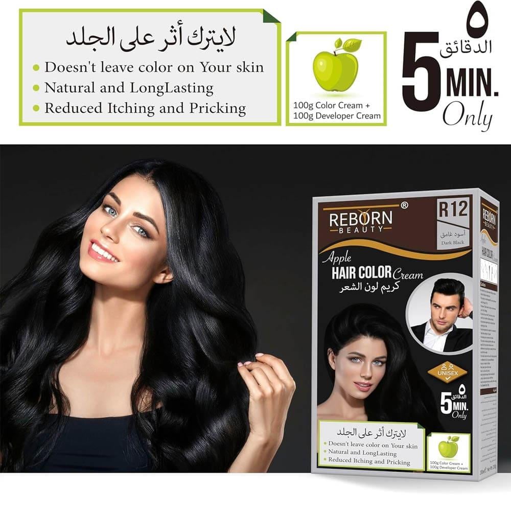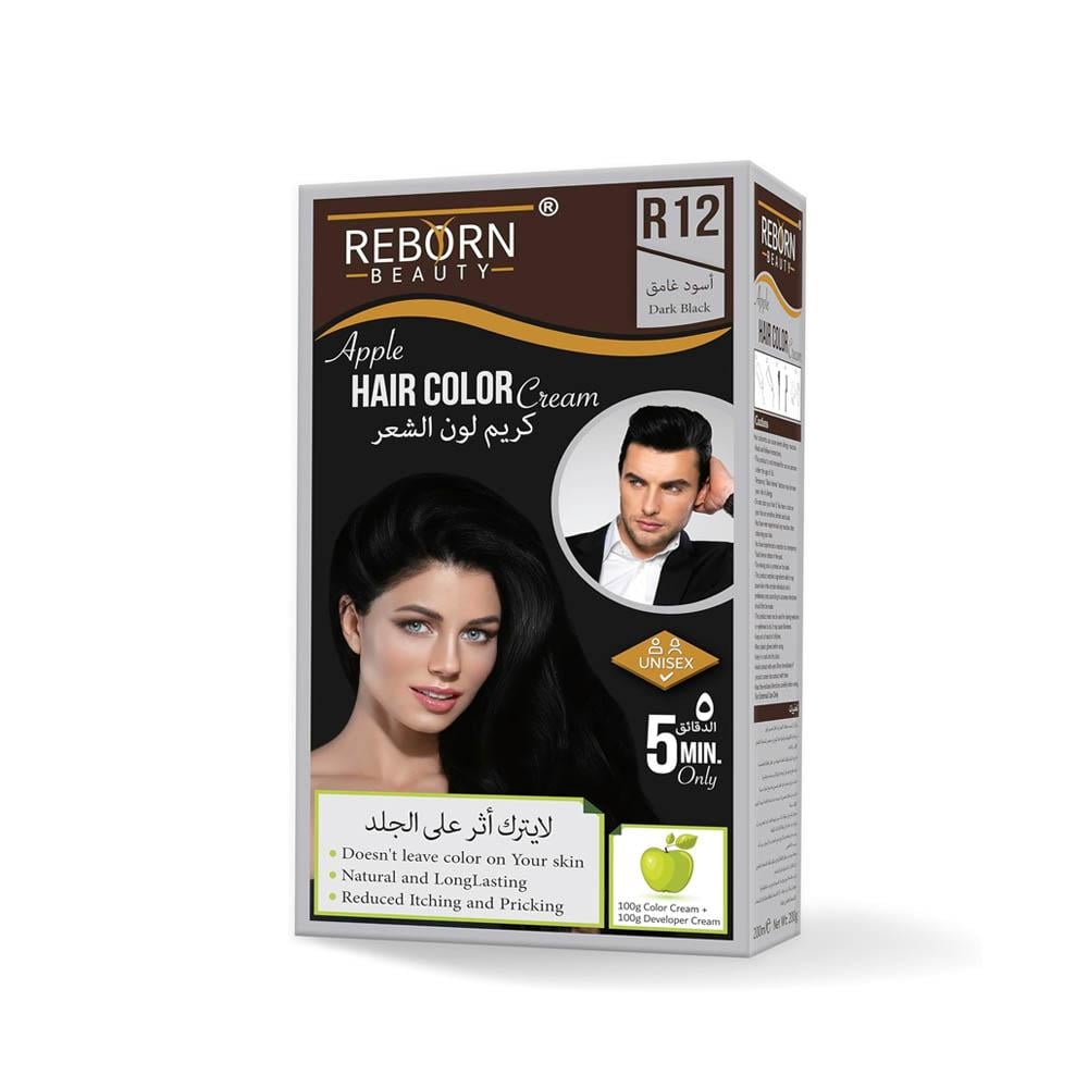 احصلي على لون أسود غامق ومشرق مع ريبورن بيوتي كريم لون الشعر R12، الذي يمنحك تغطية كاملة للشعر الأبيض بفضل تركيبته المغذية والفعالة!