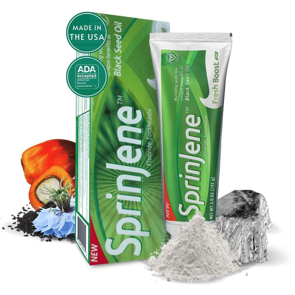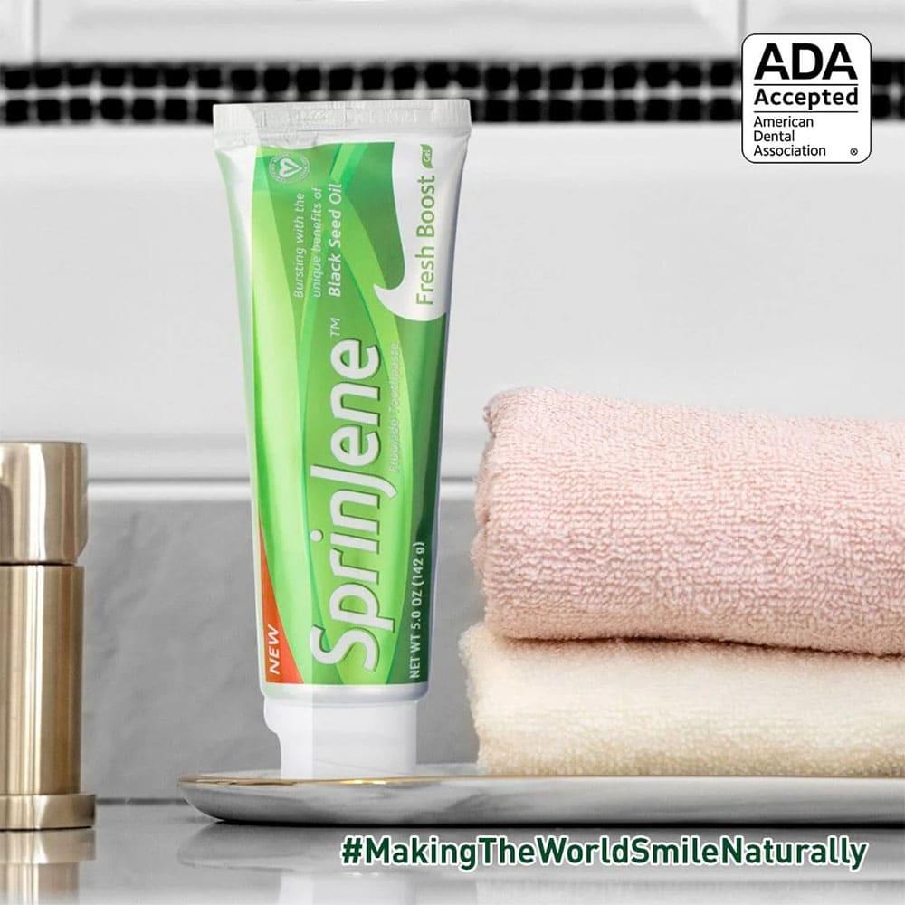 سبرينجين معجون أسنان فريش بوست بزيت حبة البركة السوداء - 142 جم هو معجون أسنان مصمم خصيصًا ليجمع بين فوائد العناية بالفم وقوة زيت حبة البركة السوداء. يعتبر هذا المعجون اختيارًا مثاليًا للحصول على تنظيف عميق ومنعش للفم، بالإضافة إلى دعم صحة الأسنان واللثة بفضل المكونات الطبيعية الفعالة.