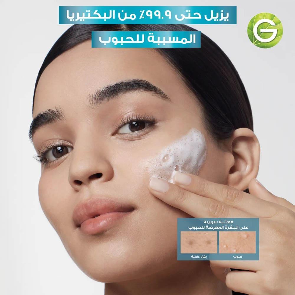 دلكي الغسول بلطف على بشرتكِ بحركات دائرية، مع التركيز على المناطق المعرضة لحب الشباب.