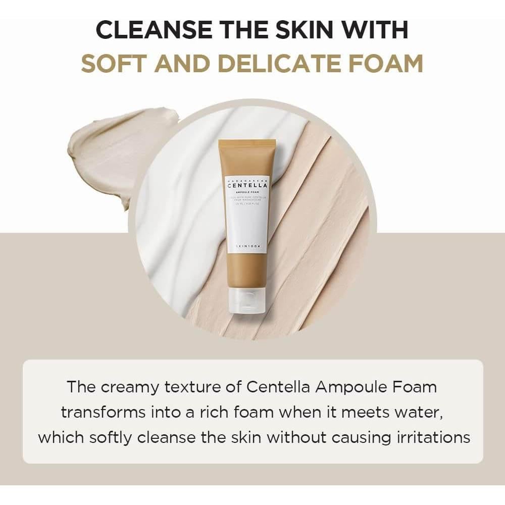 رغوة سكين 1004 مدغشقر سينتيلا أمبول منتج تنظيف للبشرة يجمع بين فوائد الرغوة المنعشة ومزايا الأمبولة المجددة للبشرة. تحتوي الرغوة على مستخلص نبات السنتيلا الآسيوي (Cica)، الذي يشتهر بخصائصه المهدئة والمضادة للالتهابات. تم تصميم هذه الرغوة لتنظيف البشرة بعمق، إزالة الشوائب والزيوت الزائدة، وترك البشرة ناعمة ومنتعشة.
