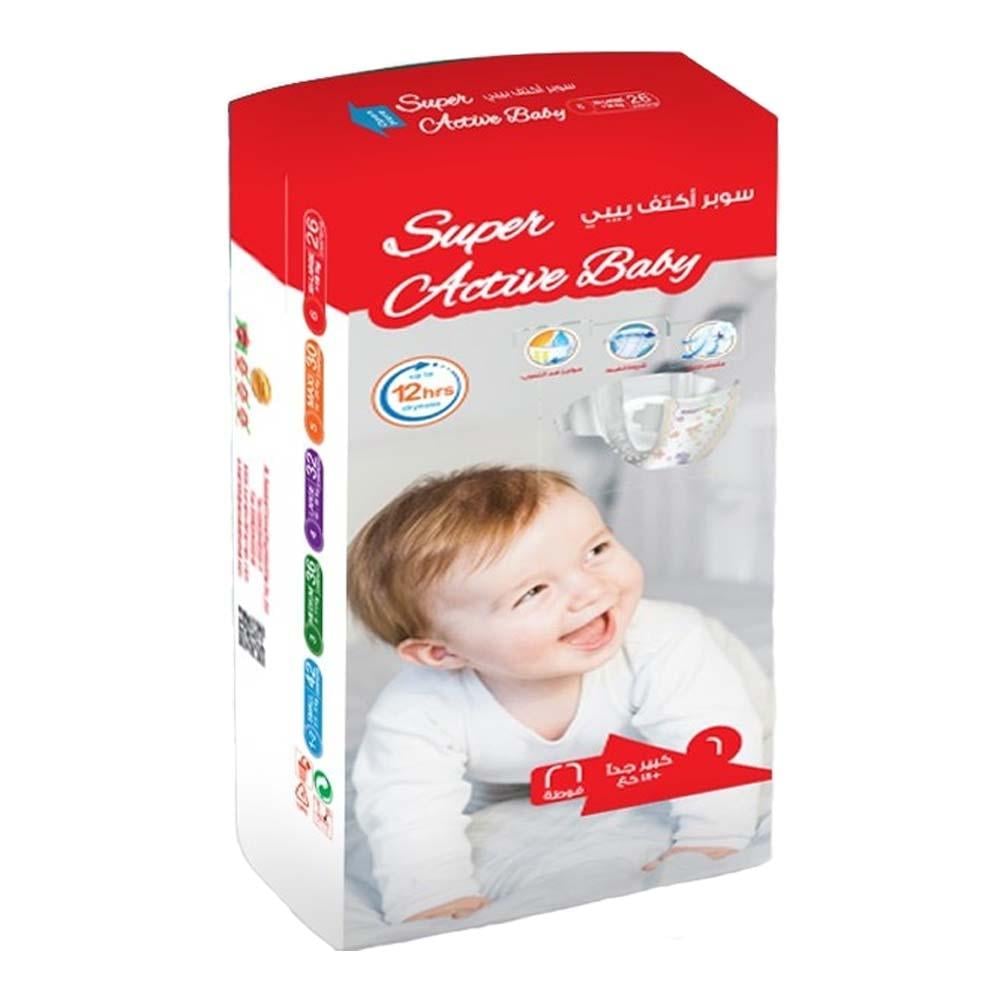 سوبر أكتف بيبي حفاضات أطفال كبير جدا حفاضات مصممة خصيصًا لتوفير الراحة والحماية للأطفال عمر 6 سنوات. تحتوي العبوة على 26 فوطة، مما يجعلها مثالية للاستخدام اليومي. تتميز هذه الحفاضات بقدرتها العالية على الامتصاص، وتصميمها الذي يوفر الحماية ضد التسرب، بالإضافة إلى نعومتها على بشرة الطفل الحساسة.