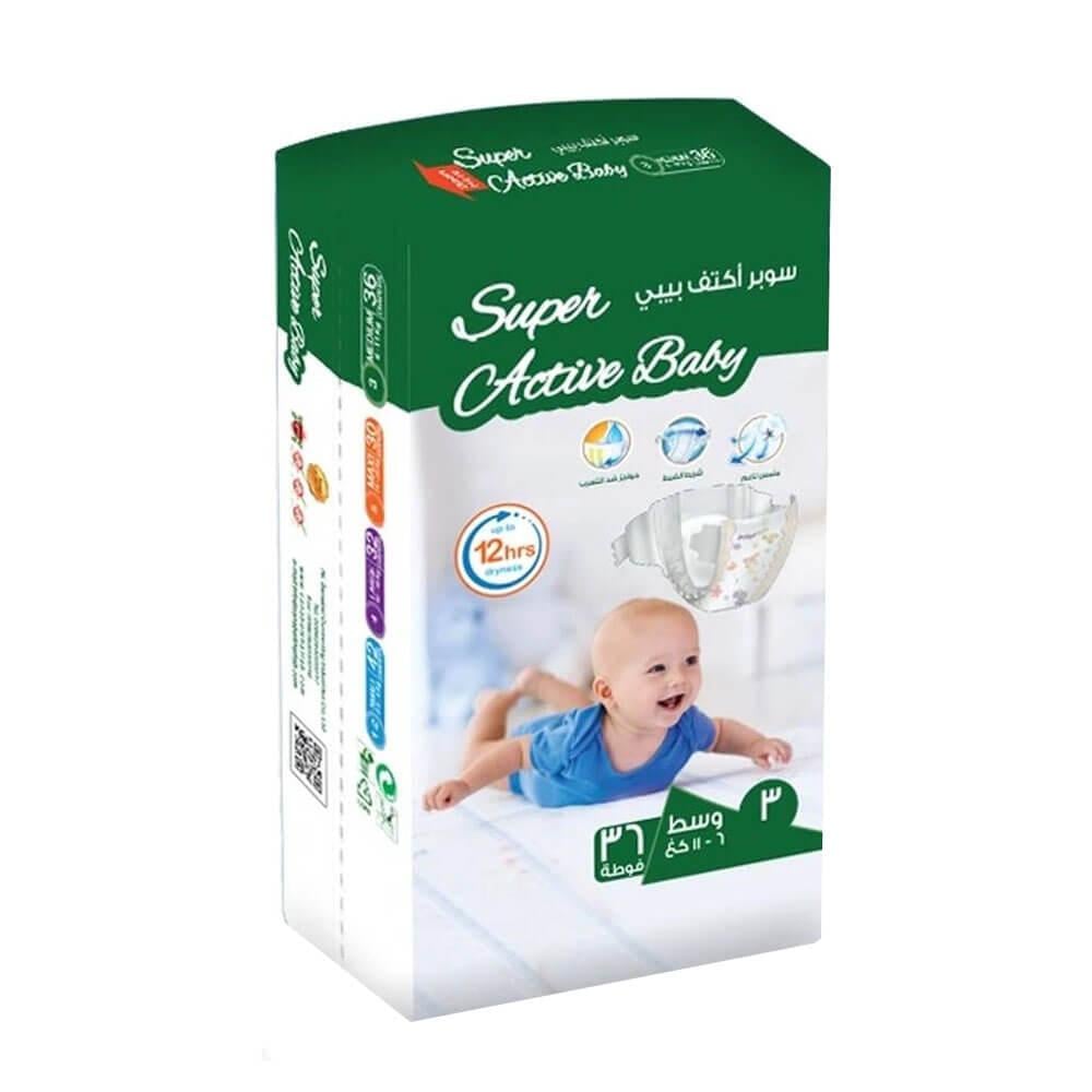 سوبر أكتف بيبي حفاضات أطفال وسط عمر 3 سنوات - 36 فوطة