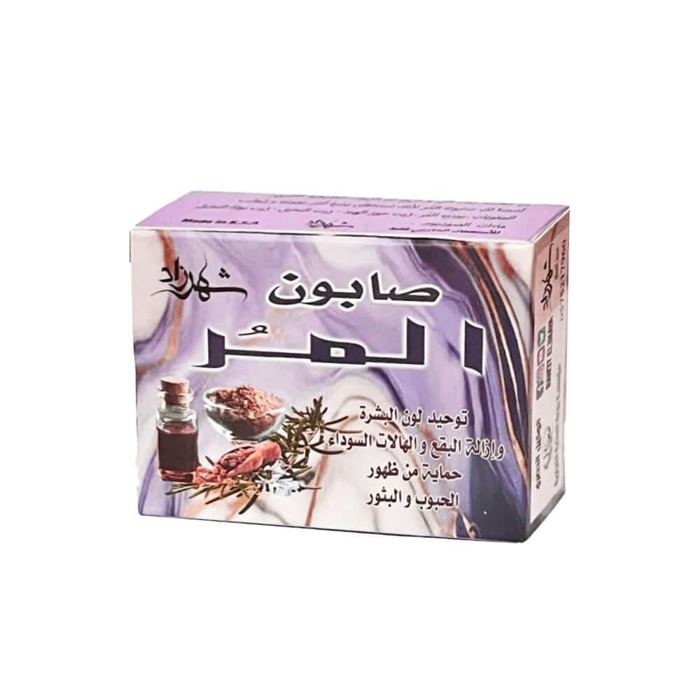 شهرزاد صابون المر طبيعي مصمم خصيصًا لتوحيد لون البشرة وإزالة البقع والهالات السوداء. يحتوي على مكونات طبيعية فعالة مثل المر، الذي يمتلك خصائص مضادة للأكسدة ومضادة للبكتيريا، مما يساعد في تحسين مظهر البشرة. يعمل الصابون على تفتيح البقع الداكنة والهالات السوداء، ويمنح البشرة إشراقة ونضارة طبيعية.