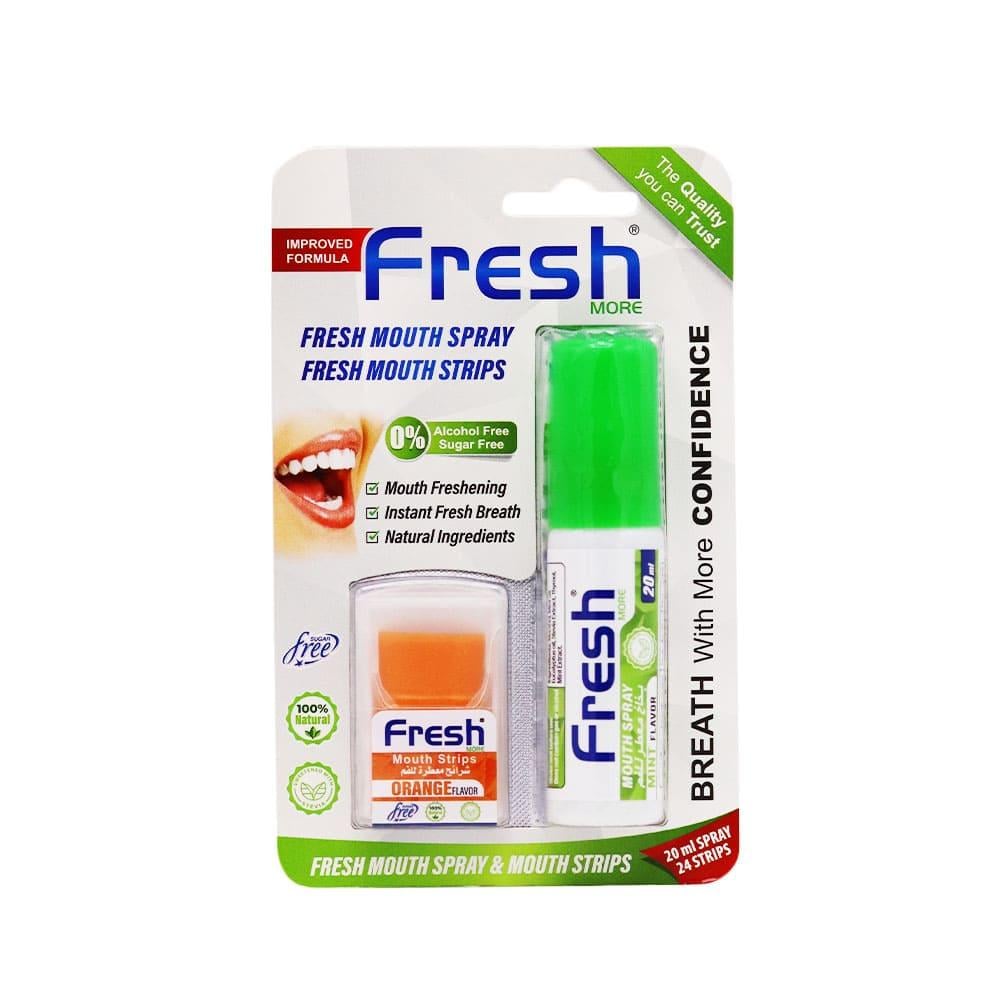 فريش مور بخاخ معطر للفم بالنعناع مع شرائح معطرة للفم بالبرتقال هي مجموعة مثالية لتنظيف وتنشيط الفم بنعومة وانتعاش. يتكون هذا الطقم من بخاخ معطر للفم بنكهة النعناع الطبيعية بحجم 20 مل وشرائح معطرة بنكهة البرتقال اللذيذة تحتوي على 24 شريحة.