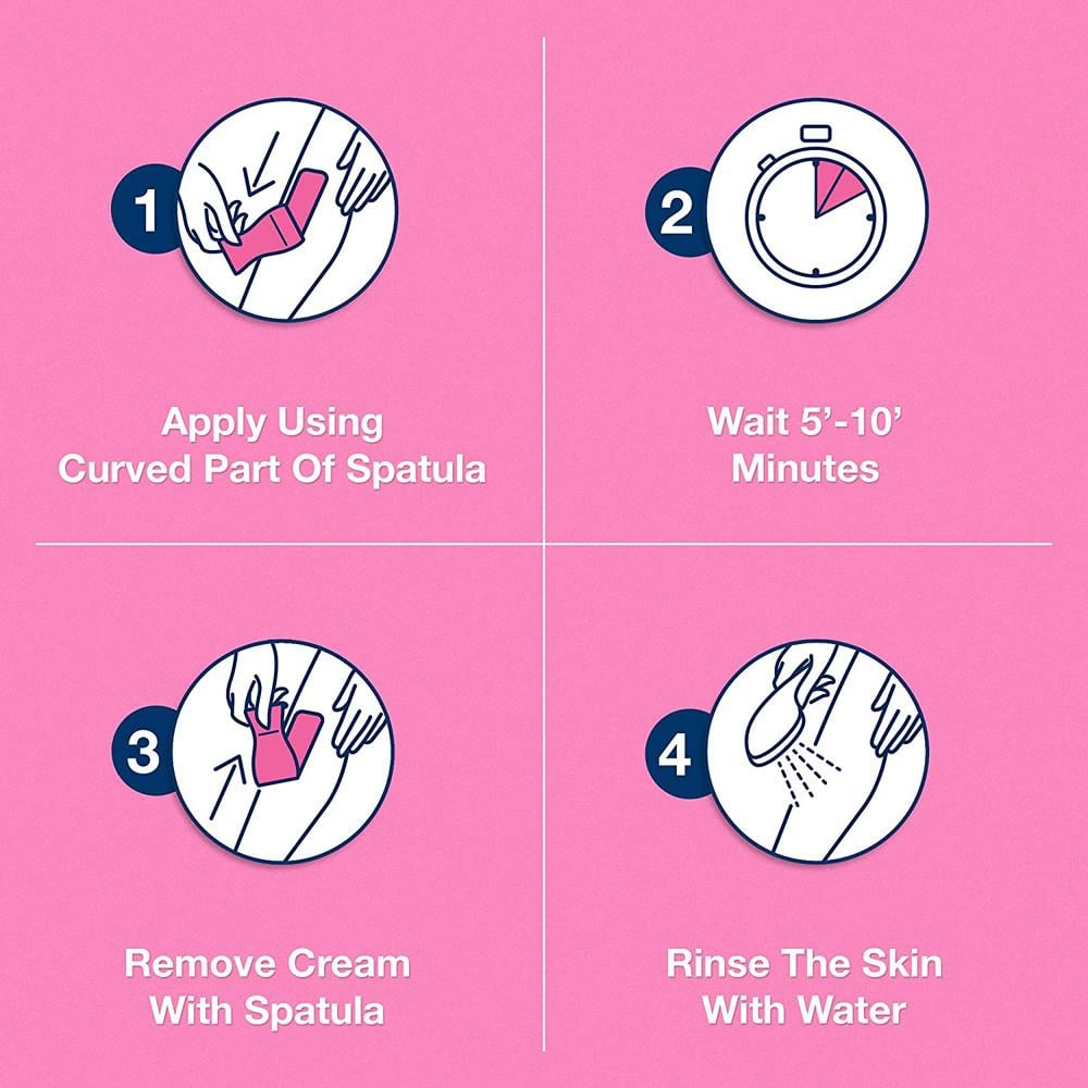 اتركيه 5 دقائق، ثم اختبري بمسحة: عند ذوبان الشعر، أزيلي الباقي.