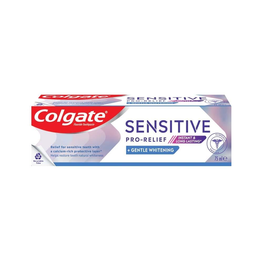 كولجيت معجون أسنان برو-ريليف للأسنان الحساسة بتبييض لطيف معجون أسنان مصمم خصيصًا لتوفير الراحة الفورية والمستمرة للأسنان الحساسة. يحتوي هذا المعجون على مكونات فعالة تعمل على تقليل الحساسية من خلال بناء حاجز حماية حول الأسنان، كما يساعد في إزالة البقع السطحية بلطف لتبييض الأسنان بشكل طبيعي وآمن.