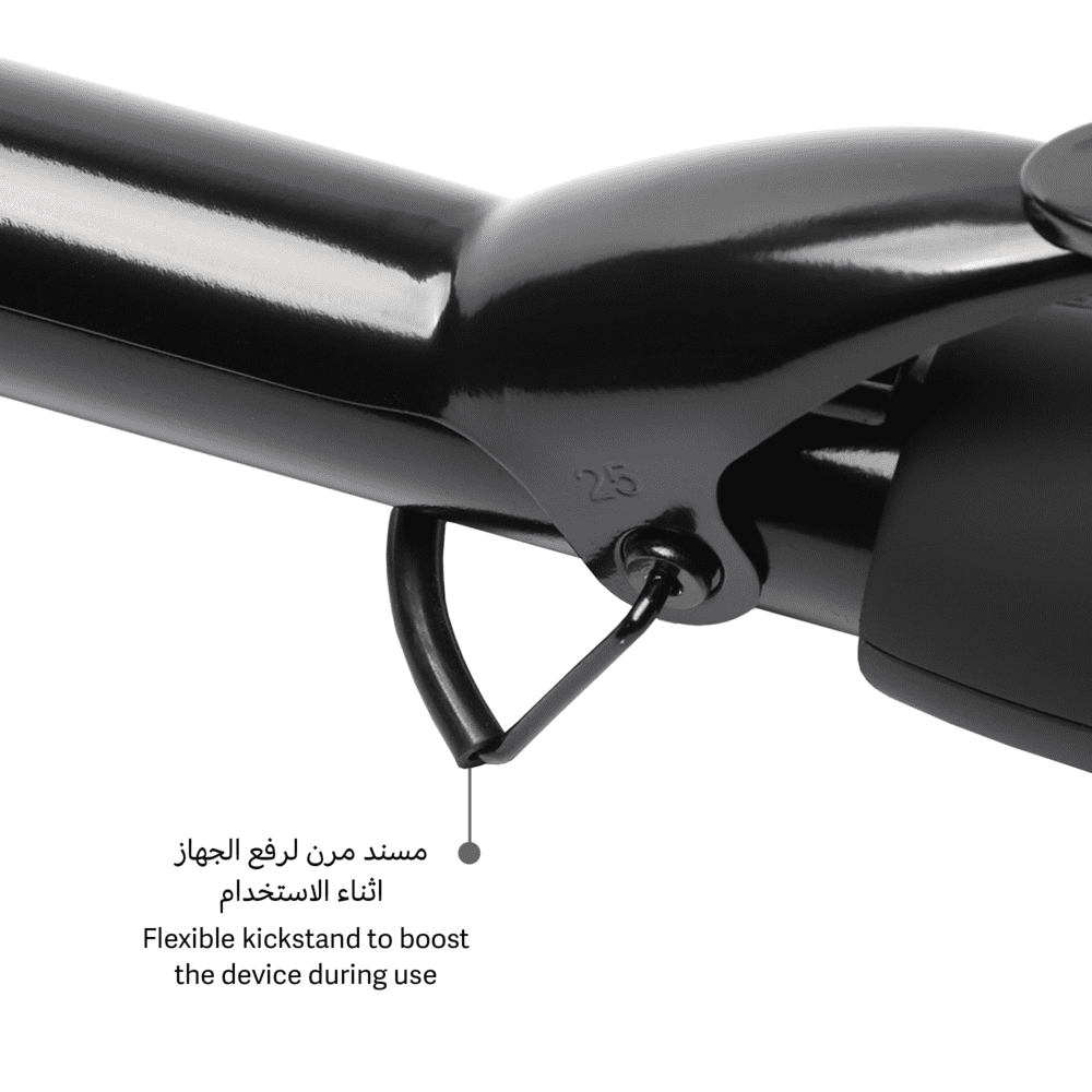 لابيل كيرلي كلاسيك يأتي بمشبك شعر مدمج و مسند مرن لوضع الجهاز بأي مكان بأريحية وأمان.