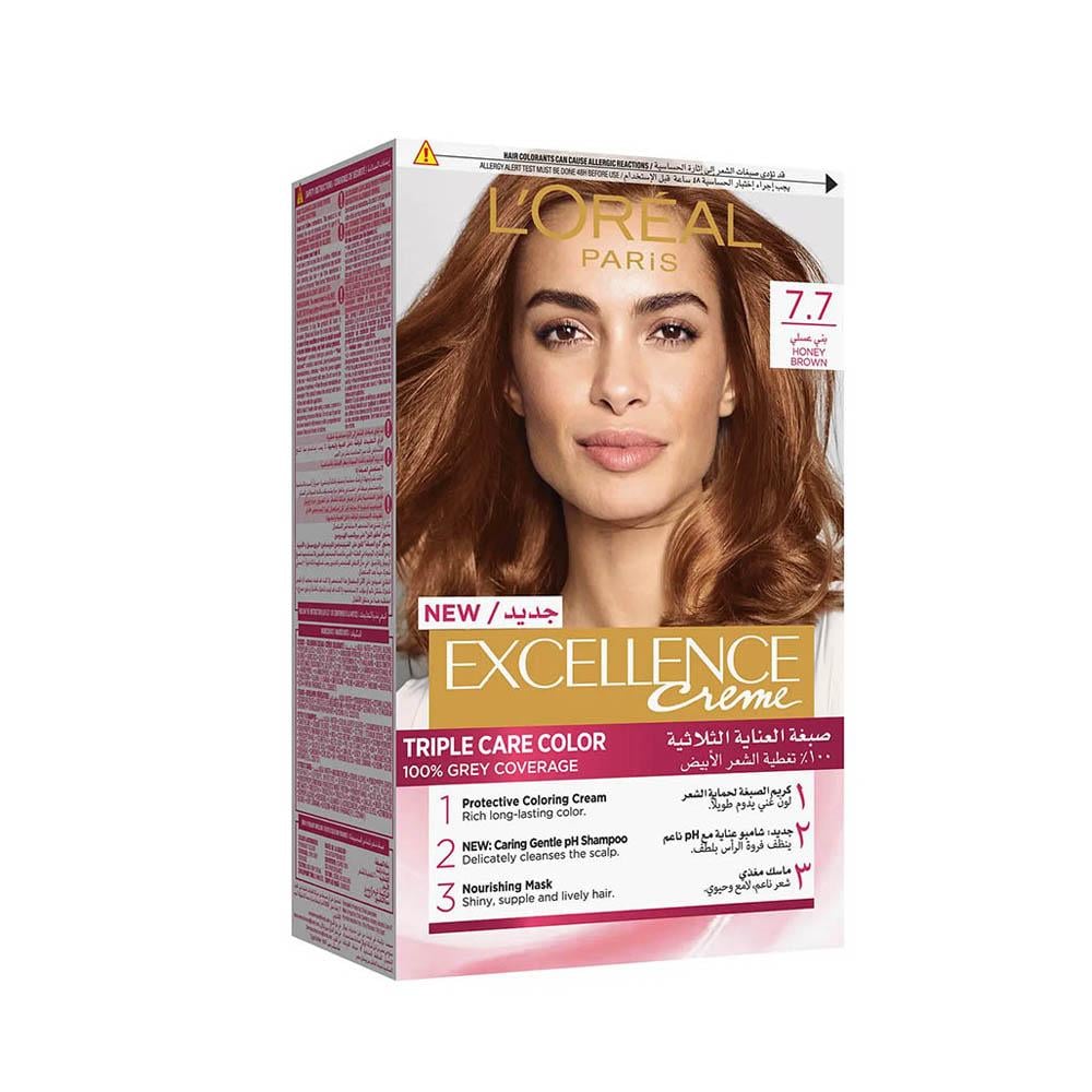 لوريال باريس إكسلانس كريم صبغة شعر العناية الثلاثية - بني عسلي 7.7