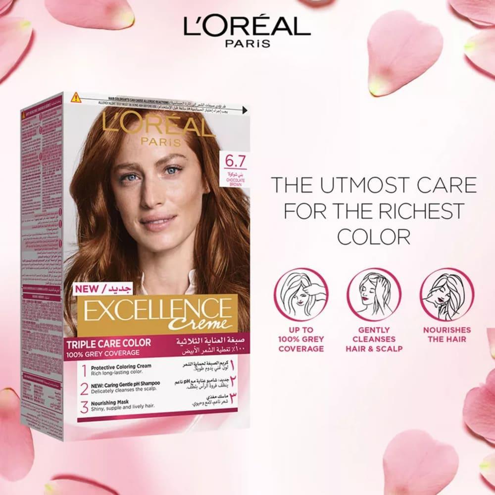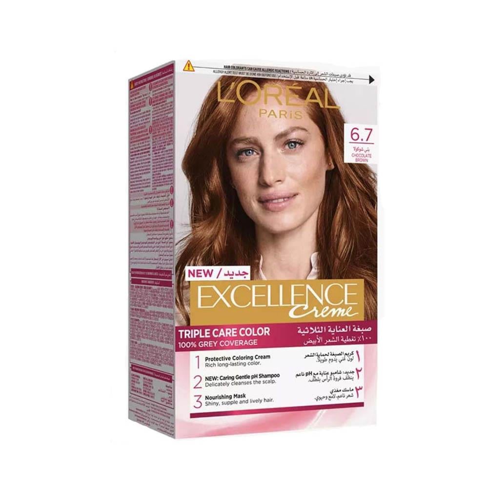 لوريال باريس إكسلانس كريم صبغة شعر العناية الثلاثية - بني شوكولا 6.7