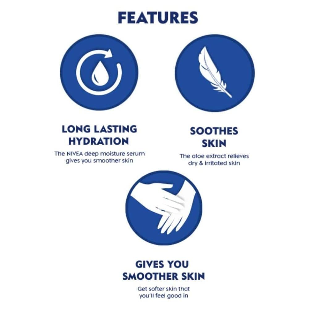 - لوشن نيفيا بالالوفيرا يوفر ترطيباً عميقاً للبشرة ما يعزز نعومتها وحيويتها طوال اليوم