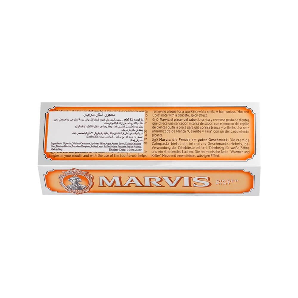 غيّر ابتسامتك وطقوس تنظيف الأسنان مع معجون أسنان الزنجبيل والنعناع (Ginger Mint) من مارفيس، المعجون الإيطالي الفاخر! 🦷🌶️ هذا المعجون الكريمي المنعش، بنكهة الزنجبيل الحارة المقطوعة ببرودة النعناع، يبيض ويحمي الأسنان بينما ينعش النفس بشكل استثنائي. تم تطويره للحفاظ على صحة الأسنان واللثة مع منع التسوس، ويستخدم معجون الأسنان تركيبة لطيفة من الزيليتول والسوربيتان لتنظيف وترطيب الأسنان دون تهيج. 🌿