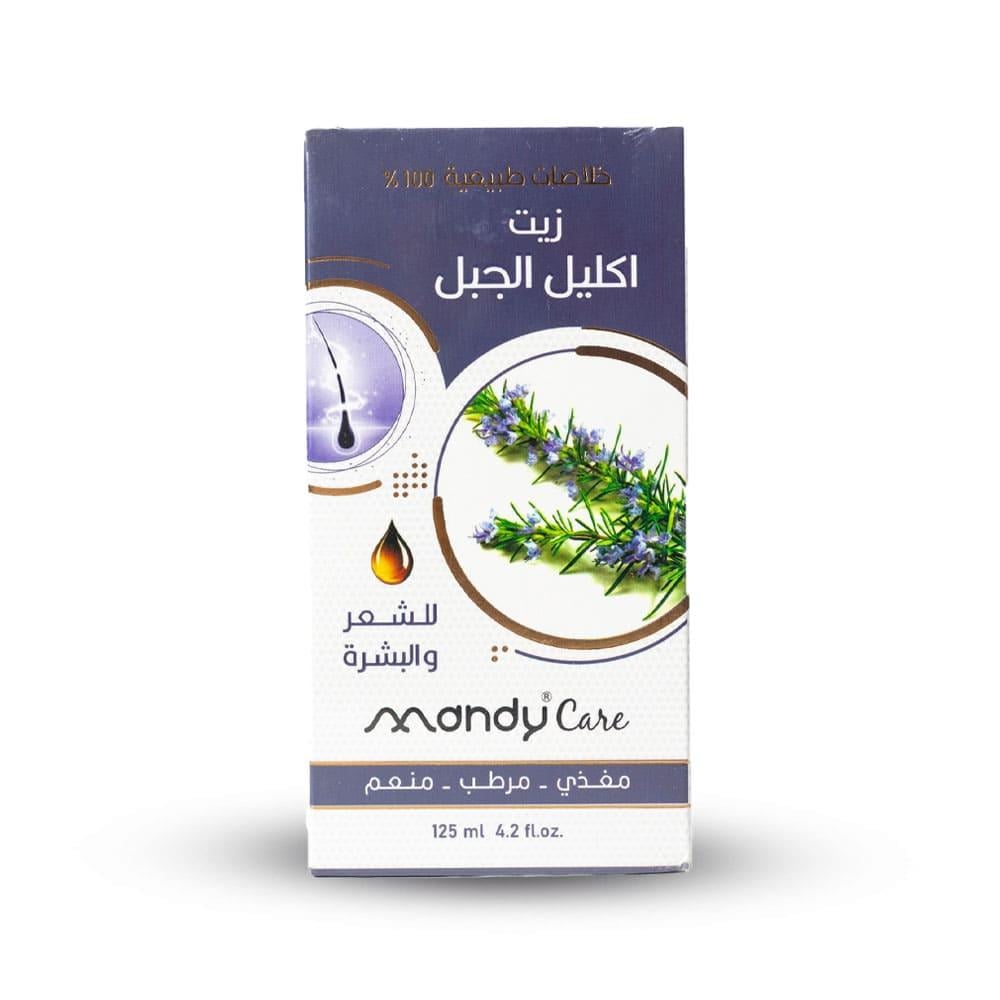 يحتوي زيت اكليل الجبل من ماندي كير على الفيتامينات، المعادن، الكالسيوم، الحديد والمنغنيز، الأمر الذي يقوم بتعزيز إفراز الكولاجين، وزيادة ترطيب البشرة، والحدّ من ظهور علامات الشيخوخة المبكرة. كما أنه يساعد على شد الجلد المترهل وجعله يبدو أكثر مرونة ونضارة. كما انه ينشط الدورة الدمويّة في الرأس، ويمنع ظهور الشيب في سنٍ مبكرٍ، ويصلح الشعر التالف. ينظف زيت اكليل الجبل فروة الرأس، ويطهرها من البكتيريا، والدهون؛ لاحتوائه على حمض الكافييك، و حمض الروزمارينيك. يمنح الشعر الحيوية، واللمعان.