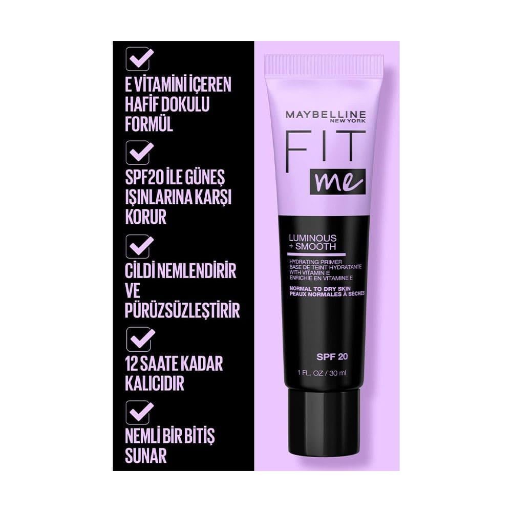 يعمل ميبيلين فيت مي لومينوس + سموذ برايمر على تشويش المسام وتقليل العيوب والتحكم في اللمعان للحصول على مكياج طبيعي غير لامع لمدة 16 ساعة.