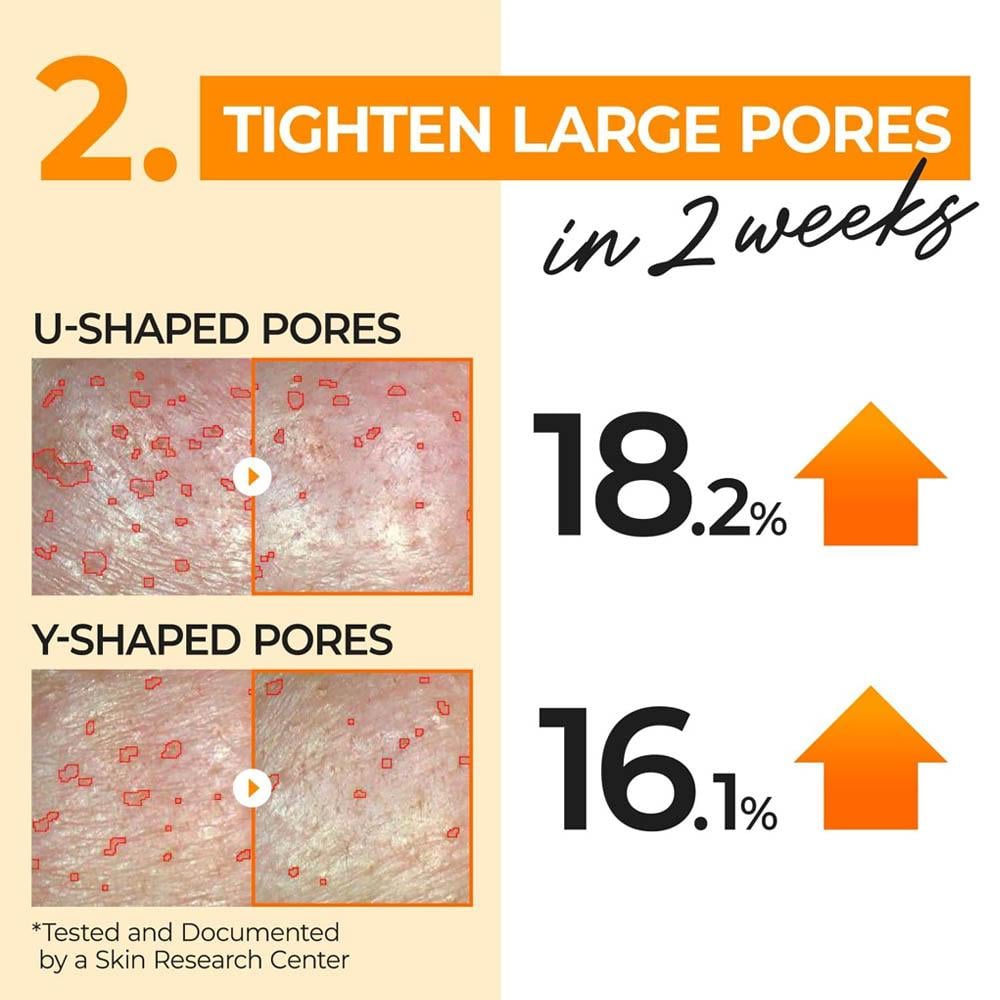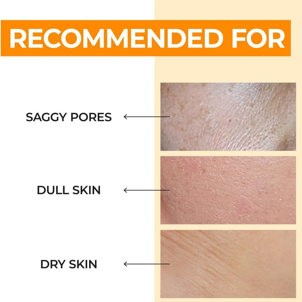 - تعزيز إشراقة البشرة يعمل على تحسين إشراقة البشرة وتوحيد لونها بفضل احتوائه على النياسيناميد وفيتامين C.