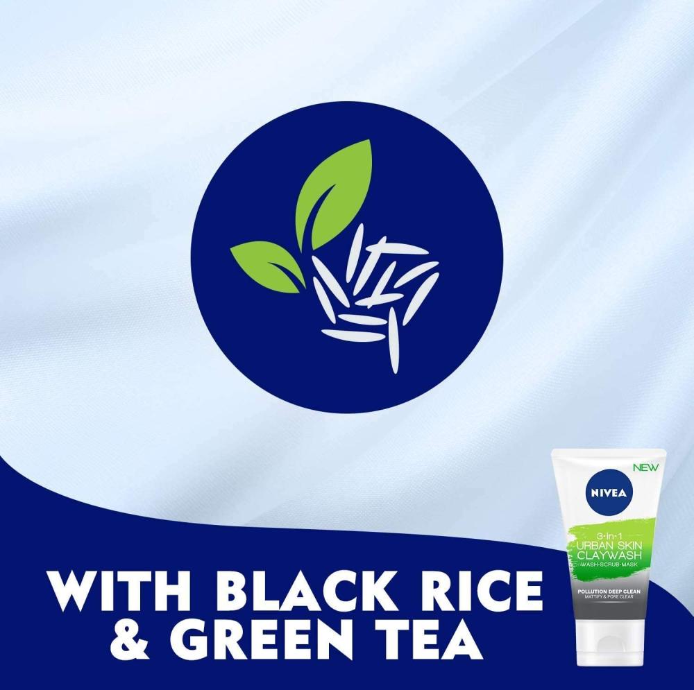 يحتوي غسول الوجه أوربان سكين ديتوكس 3 في 1 من نيفيا على تركيبة عناية غنية بالأرز الأسود وخلاصة الشاي الأخضر والطمي الطبيعي.نيفيا غسول الطين 3 فى 1( غسول وجه, قناع, تنظيف). تركيبة متعددة الأداء غنية بالمكونات الطبيعية والطين الطبيعى مما يقلل من البكتريا المسببة للبقع.الفوائد والمميزات:تركيبة متعددة الوظائف غنية بالأرز الأسود والشاي الأخضر.الغسل: ينظف البشرة بالكامل ويزيل الأوساخ والشوائب.مقشر: ينظف المسام وينقي البشرة وذلك بإزالة الخلايا الميتة.يتميز القناع بأنه يعزز تأثير إزالة اللمعان ويترك البشرة مشرقة.منتج ملائم للبشرة ومعتمد من قِبل أطباء الجلدية.كيفية الأستخدام:يستخدم مرة واحدة فى اليوم بلطف على الوجه المبلل عن طريق التدليك بسلاسة بحركة دائرية ثم يغسل بالماء.
