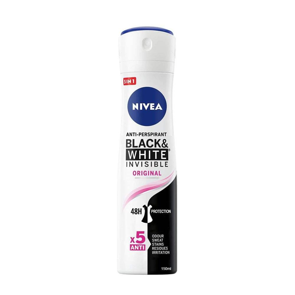 نيفيا مزيل عرق بخاخ بلاك اند وايت انفيزبل اورجينال للنساء 150 مل يوفر حماية موثوقة ضد التعرق والروائح لمدة تصل إلى 48 ساعة.