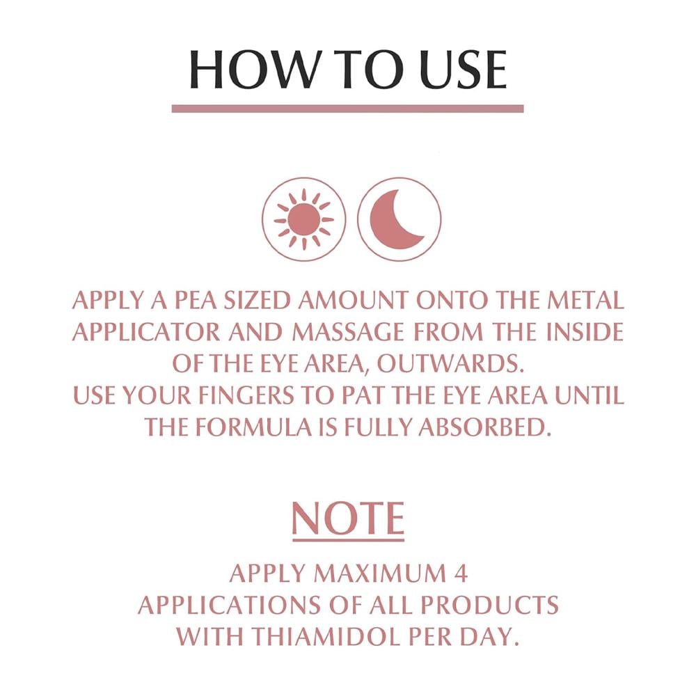 📅 يُستخدم مرة إلى مرتين يوميًا. لا تتجاوزي 4 تطبيقات يوميًا من منتجات تحتوي على Thiamidol.