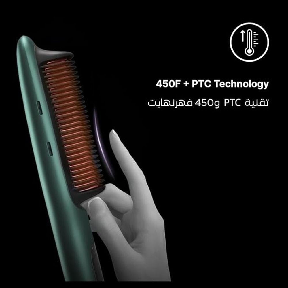 مشط الشعر الكهربائي من يونايتد بروفيشنال هو الخيار الأمثل! بتصميمه الأنيق باللون الأخضر، يجمع هذا الجهاز بين الأداء القوي والتقنيات المتقدمة. يسخن بسرعة ويوفر توزيعًا متساويًا للحرارة، مع تقنية الأيونات السالبة التي تقلل من التجعد وتزيد من نعومة ولمعان شعركِ، لتحصلي على شعر مثالي وصحي في كل مرة.