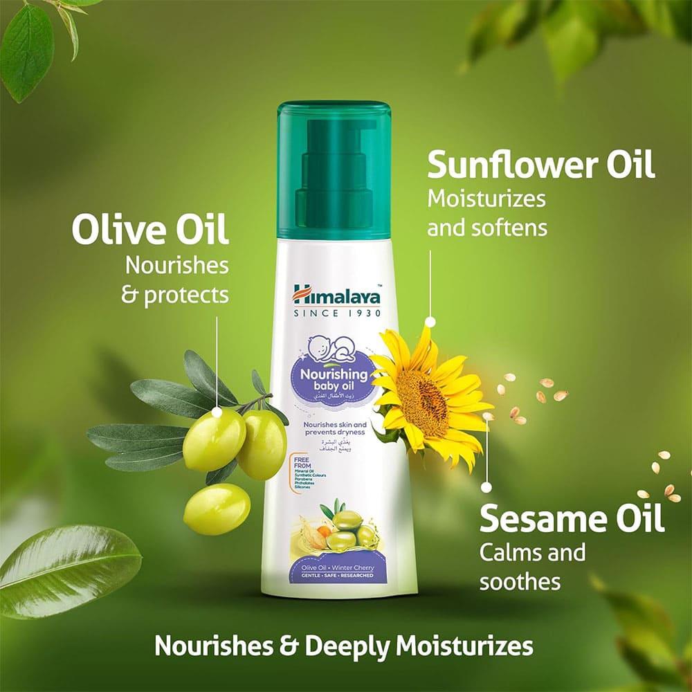 امنحي طفلكِ أفضل عناية يومية مع هيمالايا زيت أطفال مغذي - بزيت الزيتون والكرز الشتوي - 200 مل، المصمم لتوفير ترطيب عميق وتغذية مثالية لبشرة طفلكِ الحساسة بفضل تركيبته الطبيعية!