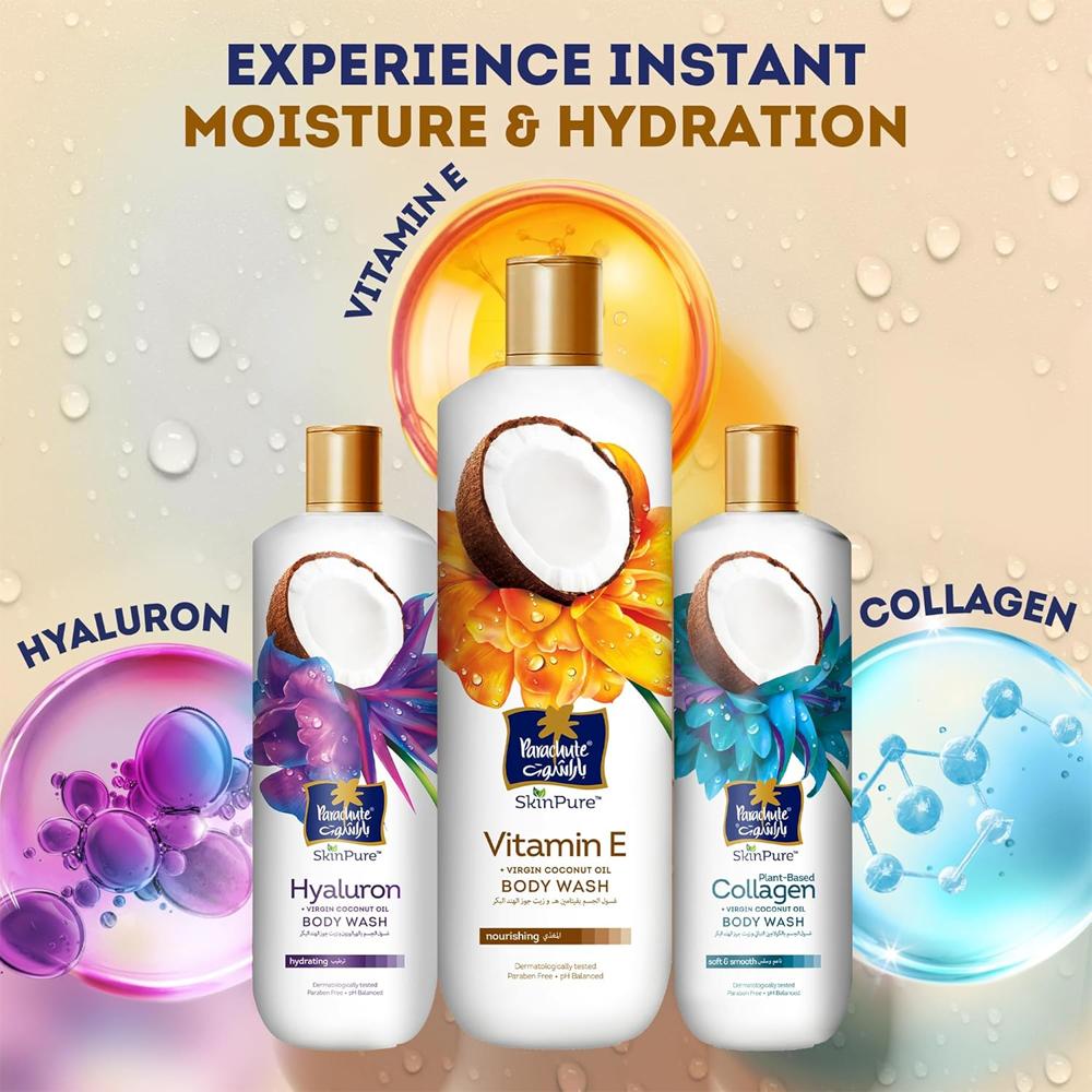 باراشوت غسول الجسم فيتامين إي + جوز الهند البكر – 400 مل