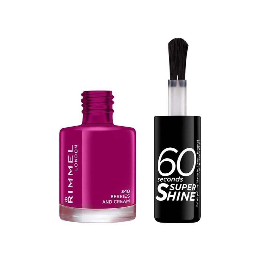 ريميل لندن طلاء أظافر 60 سكندز سوبر شاين باللون 340 بيري آند كريم يتميز بتركيبة تجف بسرعة وتمنح لمعانًا فائقًا.