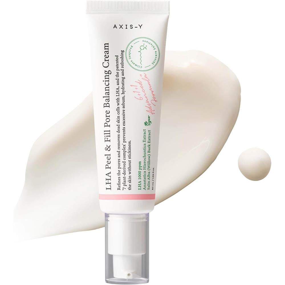 AXIS-Y LHA Peel & Fill Pore Balancing Cream is a daily cream designed to achieve optimal skin balance through gentle exfoliation and improved pore appearance. It contains LHA (Lipo Hydroxy Acid) that gently removes dead skin cells without irritation, helping to purify the skin and give it a smoother appearance. Additionally, it contains Desert Relief Complex that provides the skin with moisture and nutrients, enhancing its elasticity and vitality. Its lightweight formula absorbs quickly without leaving any greasy residue, making it suitable for daily use and for all skin types.