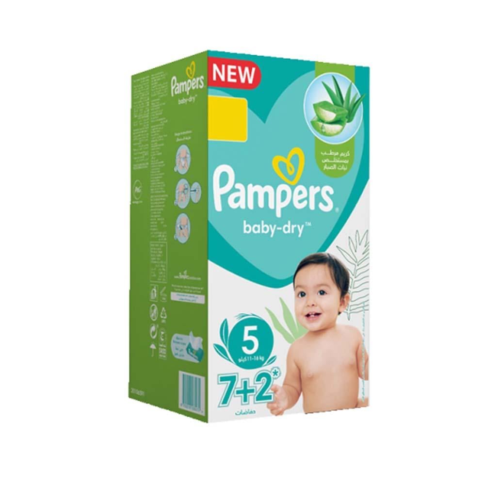 Pampers Aloe Vera Baby Diapers are specially designed to provide superior comfort and protection for your baby. These diapers contain aloe vera extract known for its soothing and moisturizing properties, which helps in keeping baby's skin soft and healthy. This pack comes in size 5 and is suitable for children weighing between 11 - 16 kg. The package contains 2+ 7 tablets, providing parents with more value and convenience.
