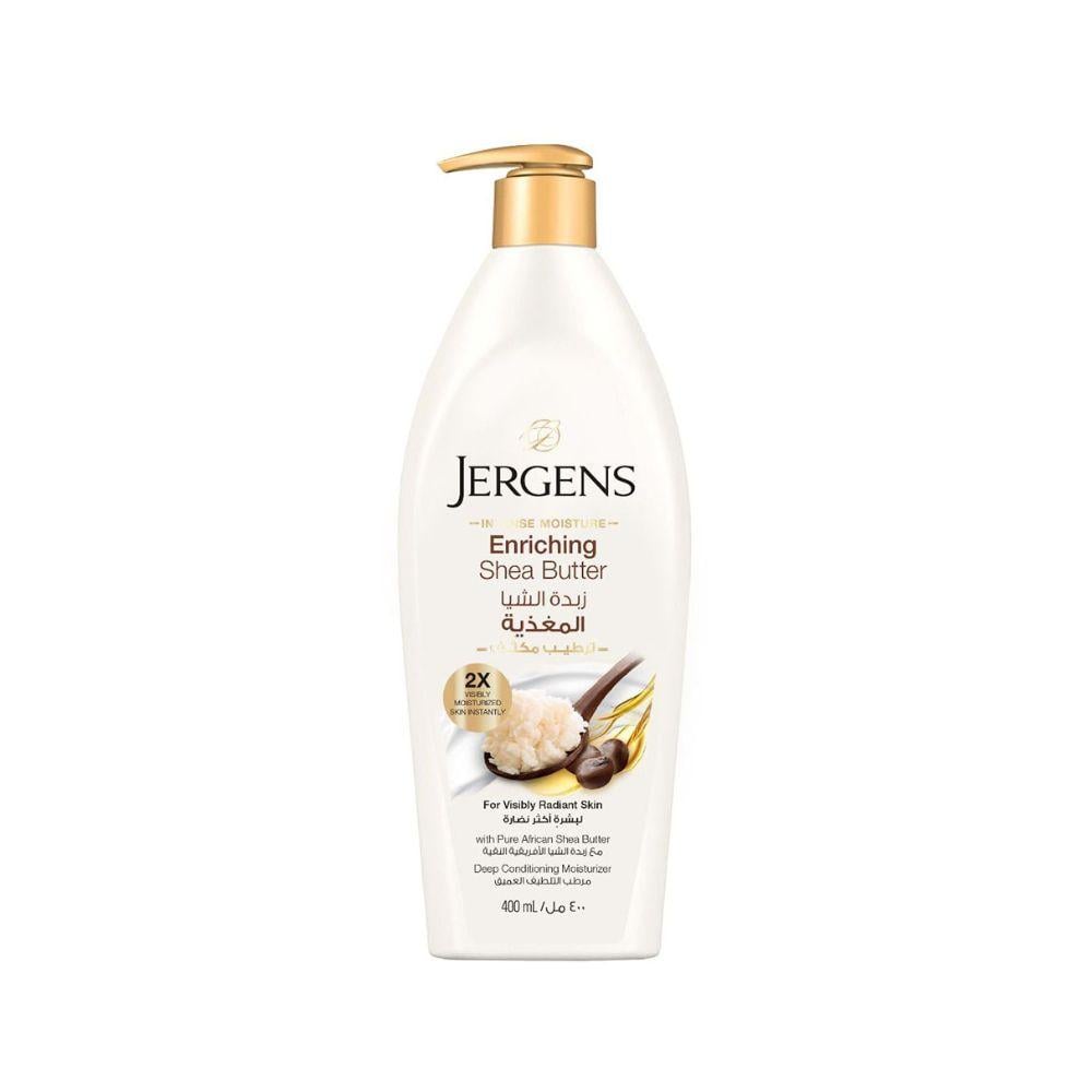 Jergens Shea Butter Lotion provides intense moisture and restores softness and elasticity to dry skin with its rich blend of vitamins and fatty acids.