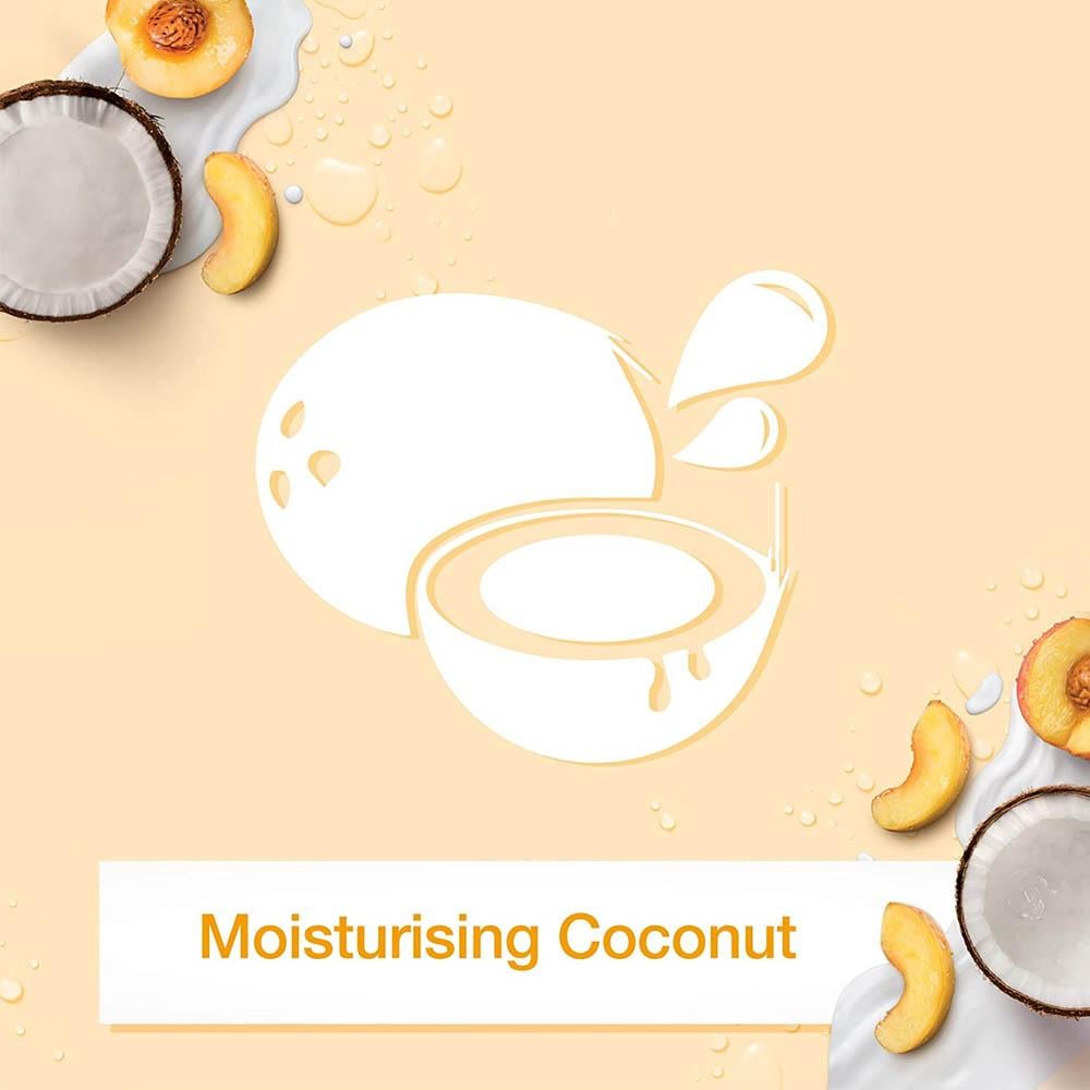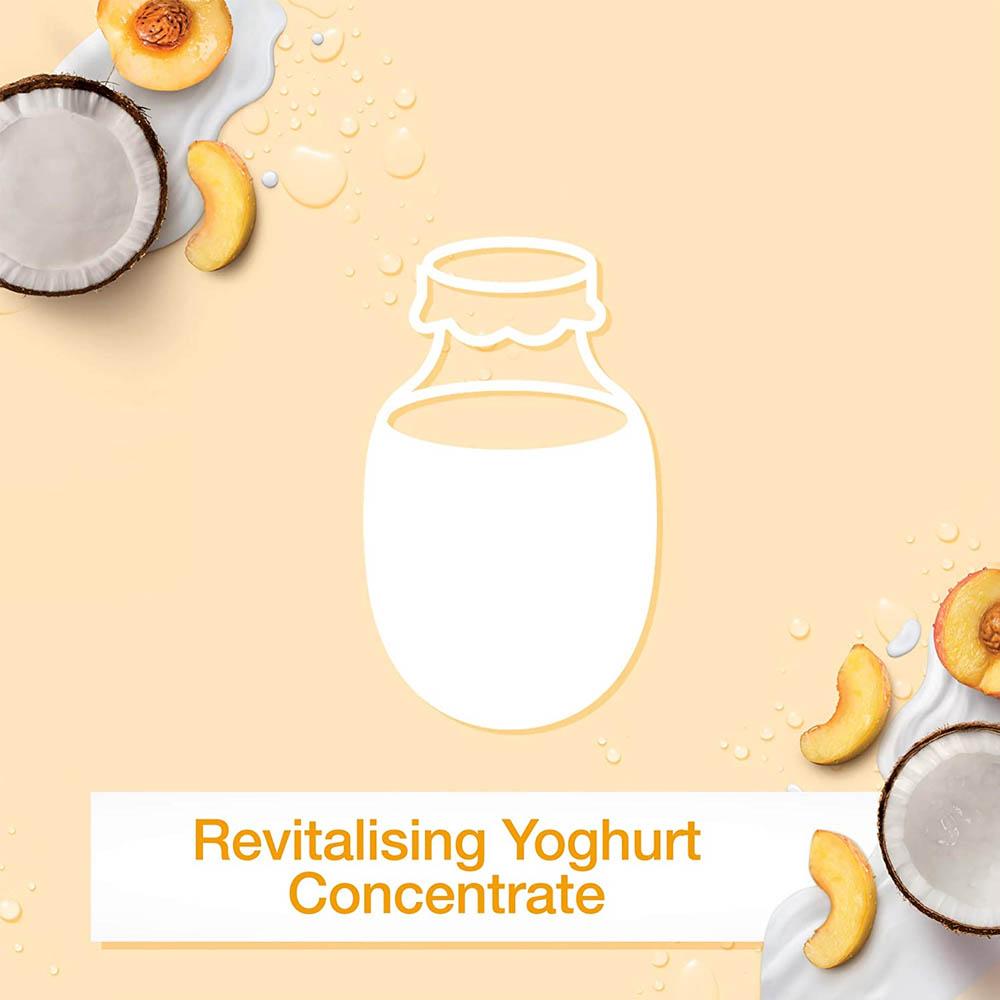 • It gives the skin a refreshing scent of yogurt, peach and coconut extracts.