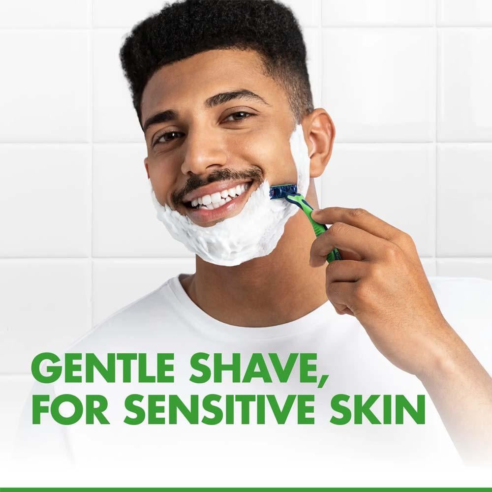 The Gillette Blue3 men's razor gives you a smoother shave and 100% better cleanliness compared to the Blue2. The Blue3 Sensitive for sensitive skin features an advanced moisturizing strip for exceptional comfort for sensitive skin during shaving compared to the Blue2 Plus, and its moving head adapts to the contours of your face, complete with a soft handle for superior control.
