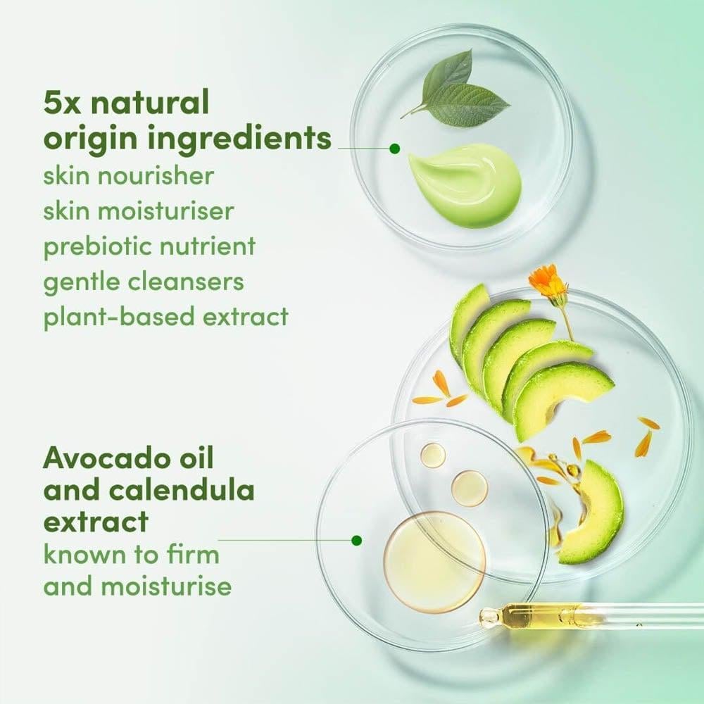 Dove Natural Care Avocado Oil & Calendula Body Wash is a rich formula that provides gentle cleansing and deep hydration for the skin. It combines the benefits of nourishing avocado oil with soothing calendula extract, helping to soften and replenish the skin while you shower. It gives you a relaxing shower experience with a creamy lather that pampers your senses, leaving your skin soft and supple after every use.