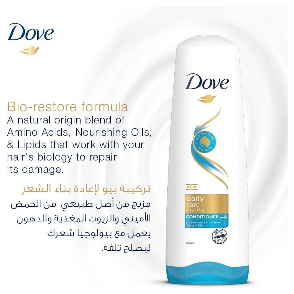 Dove Daily Care Conditioner is designed to provide the daily nourishment needed for dry and damaged hair. It contains a formula rich in moisturizers and nutrients that deeply penetrate the hair to restore its vitality and natural shine. It provides hair with instant and long-lasting hydration, making it softer and easier to style. The conditioner is ideal for daily hair care, as it helps protect it from dryness caused by environmental factors or heat styling.