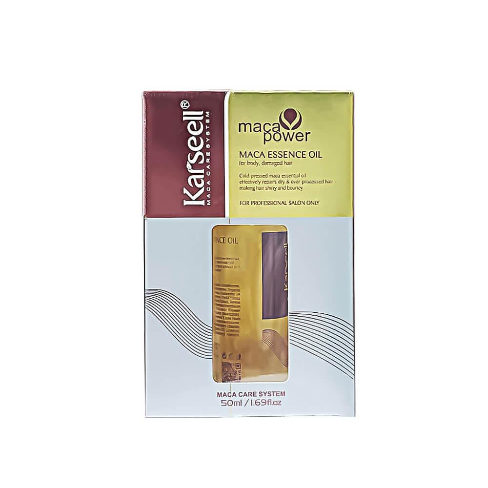 Karsil Maca Oil, a product for the care and treatment of damaged hair.