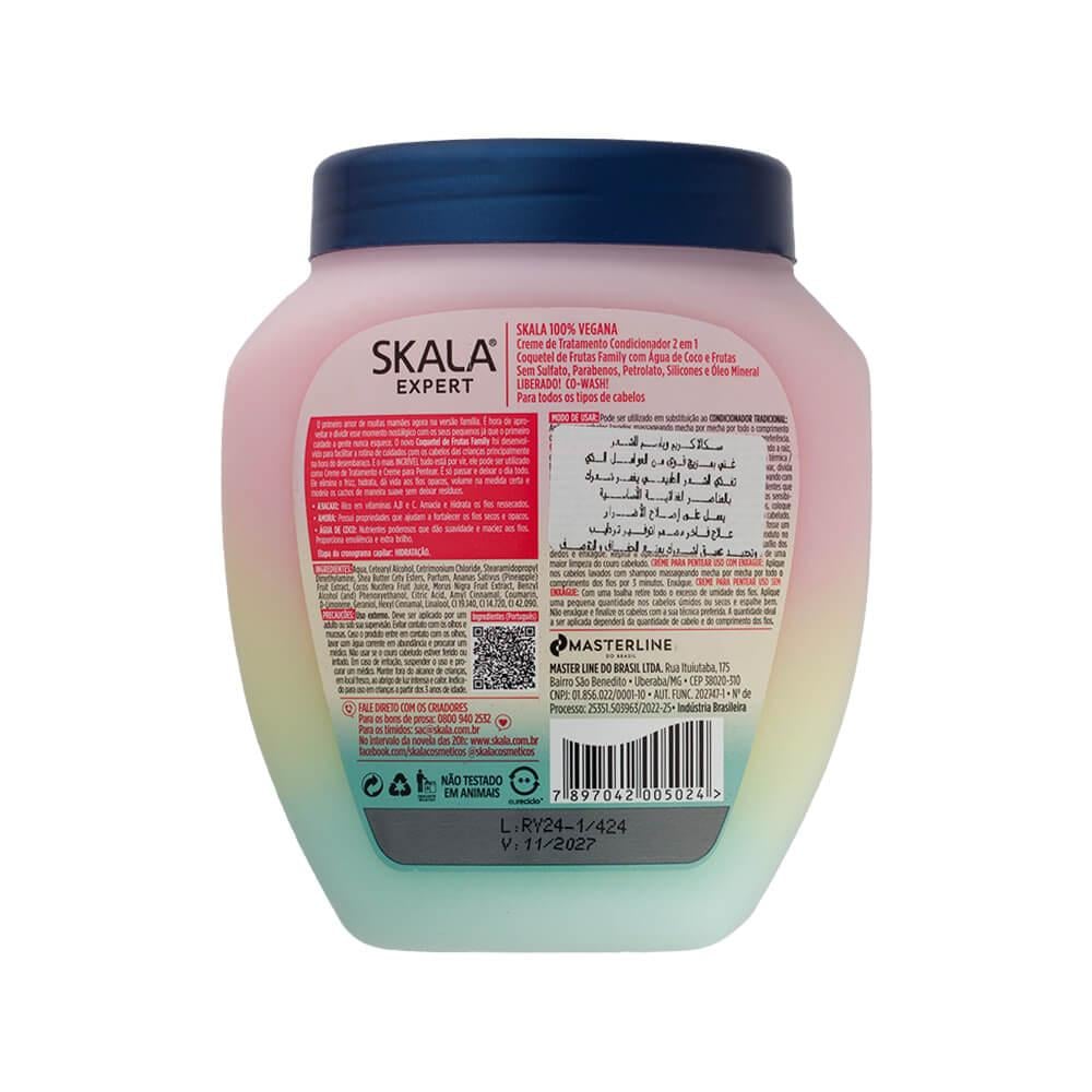 SKALA Expert Fruit Cocktail Cream is a unique Brazilian hair care product, featuring a vegan formula free of sulfates, silicones, parabens, and mineral oils. It can be used as a daily styling cream or as a deep conditioning mask, making it ideal for dry, frizzy, or damaged hair. It contains a rich blend of natural oils, such as argan oil, coconut oil, papaya oil, and amaranth extract, which help deeply moisturize hair, strengthen strands, and improve elasticity.