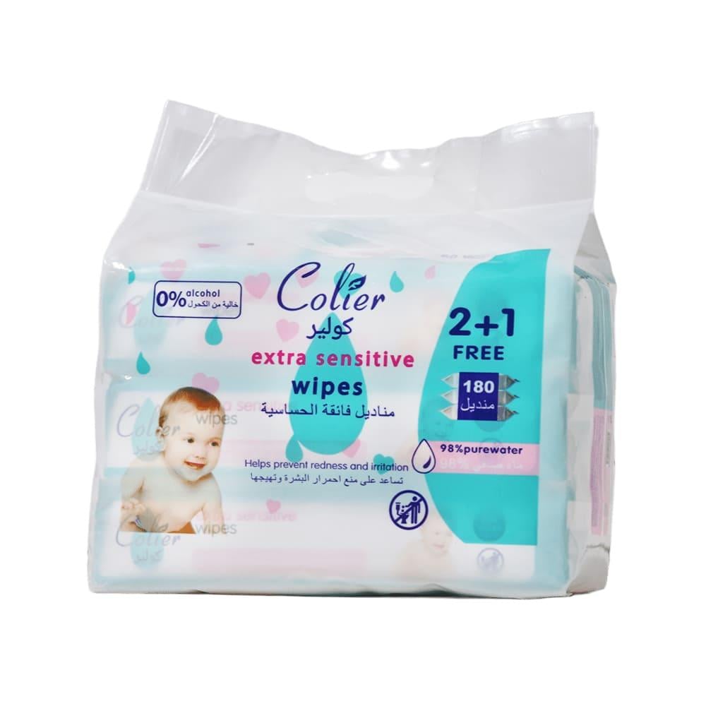 Are you seeking gentle and safe care for your baby's sensitive skin? 😩 Say goodbye to rashes and irritation! 👋 "Colier Extra Sensitive Wipes" are the perfect solution for cleansing your baby's skin with ultimate softness and guaranteed protection. 🌟 Imagine soft, clean skin, completely free from redness 👶 thanks to a gentle, alcohol-free formula. These ultra-sensitive baby wipes, also known as alcohol-free baby wipes, are specifically designed to provide maximum care and protection for your baby's delicate skin. Forget worrying about sensitivities or dryness, 🙅♀️ because with Colier Extra Sensitive Wipes, you'll get effective cleansing and moisturizing care that protects your baby's skin, making it feel comfortable and refreshed. 💖 Ensure your baby enjoys happy, healthy skin at all times! ✨ (Special offer: 2+1 Free!)