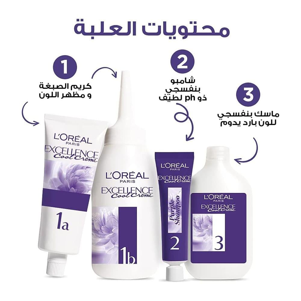 Are you looking for a hair dye that gives you trendy, cool gray tones while offering comprehensive hair protection? 💇‍♀️ Say goodbye to gray hair and dull colors with L'Oréal Paris Excellence Ash Supreme, an advanced hair color! 💖 This dye offers cool colors with distinctive gray highlights, combining complete hair care with effective results for 100% gray coverage. It features Triple Protection Technology that nourishes and protects hair before, during, and after coloring. Its nourishing ingredients improve the health and appearance of hair, leaving it softer and shinier. 🌟 Imagine attractive, cool gray hair that's shiny, healthy, and gray-free, with long-lasting results. ⏳