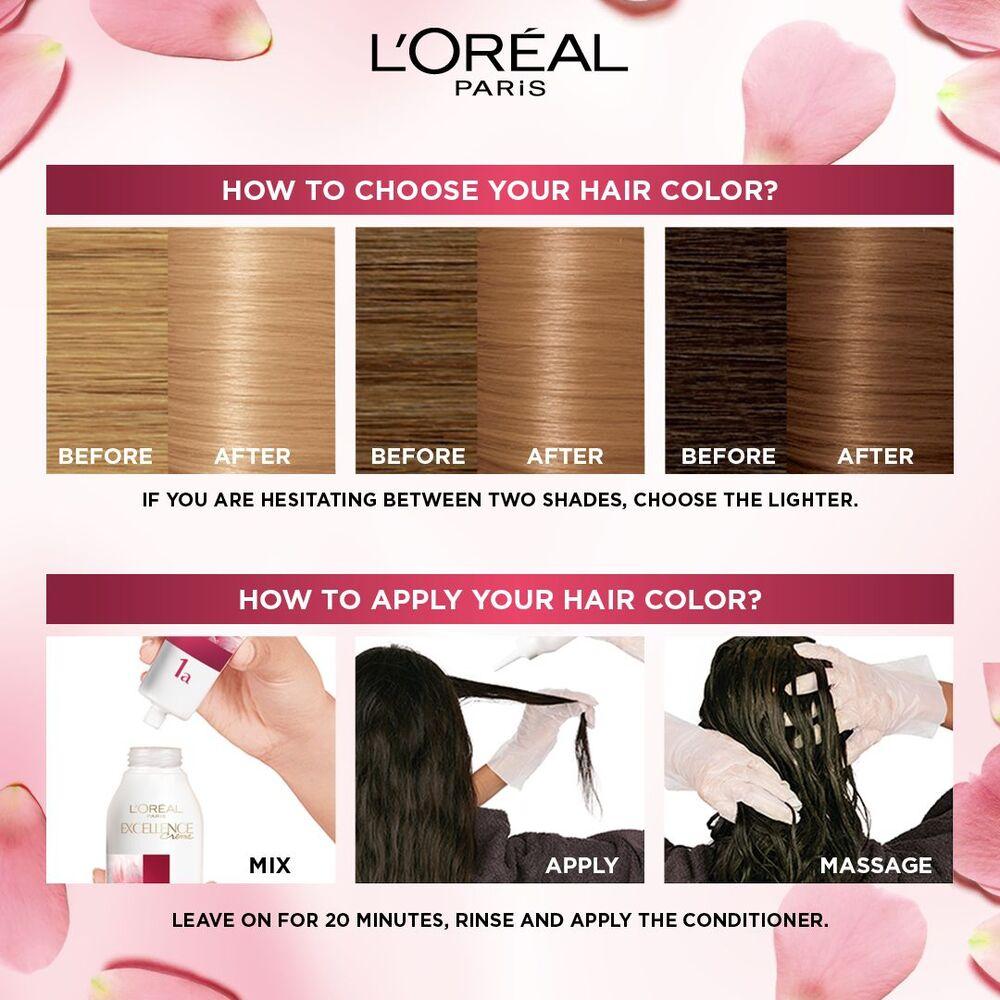 L'Oreal Paris Excellence Creme hair dye is one of the leading choices for rich color and healthy-looking hair. This dye provides perfect hair coverage and ensures long-lasting color thanks to its advanced formula rich in nourishing ingredients. The product features triple protection for hair before, during and after dyeing.