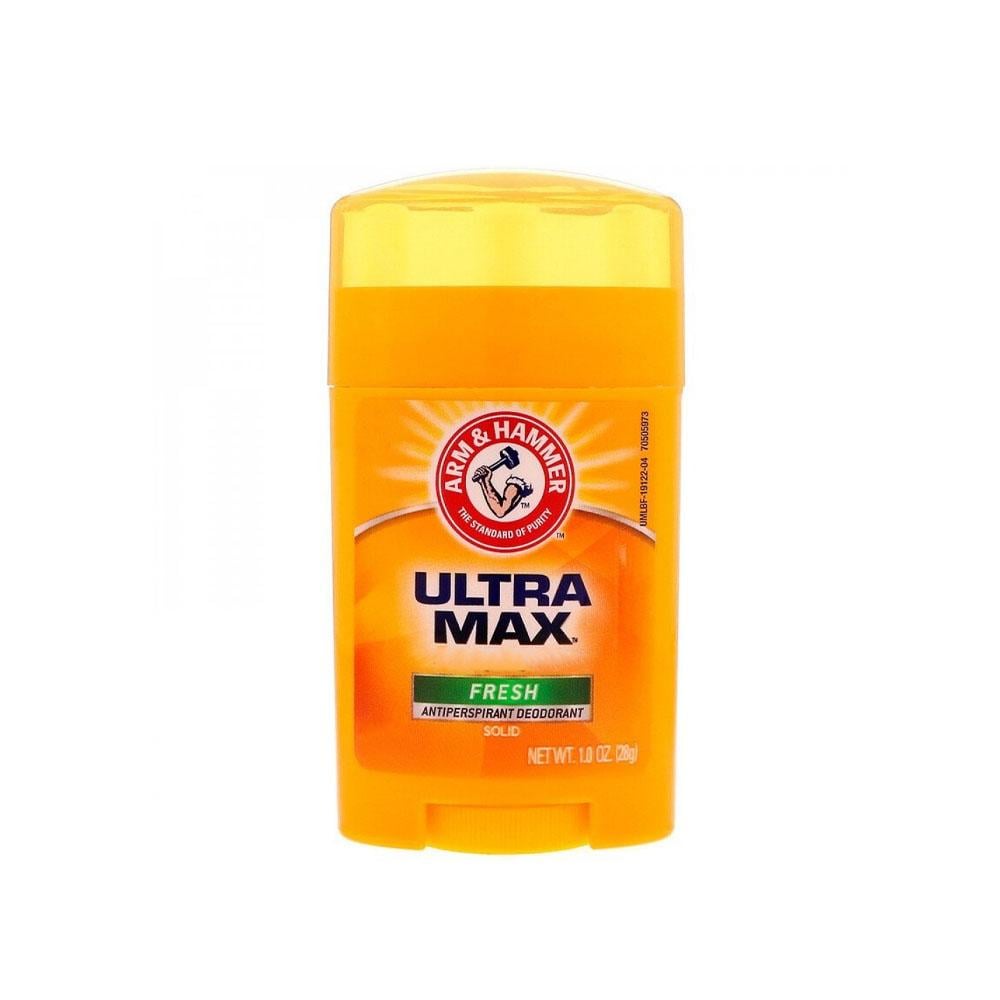 Enjoy lasting freshness and reliable protection with Arm & Hammer Ultra Max Fresh Antiperspirant Deodorant Solid - 28g! This deodorant is specifically designed to "reduce underarm sweat due to stress", ensuring you feel fresh and confident all day long. With its effective solid formula, it provides strong protection against wetness and odor, leaving your skin refreshed with an appealing "Fresh" scent. Ideal for an active daily life! 🏃♀️☀️