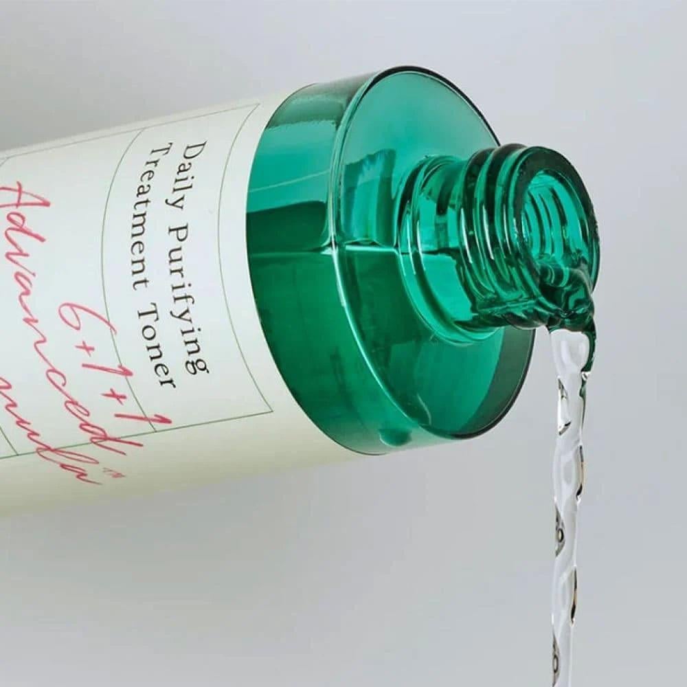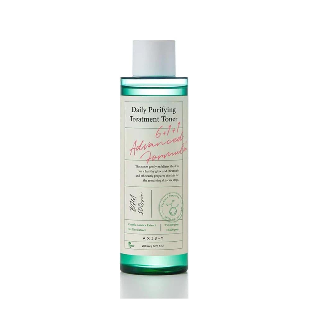 AXIS-Y Daily Purifying Treatment Toner is a daily toner specially formulated for oily and acne-prone skin. It contains 0.5% Salicylic Acid (BHA) which helps gently exfoliate the skin, improving its texture and reducing the appearance of pores. Additionally, the toner contains natural extracts such as Tea Tree Extract and Houttuynia Cordata Extract, known for their antibacterial and soothing properties, which help reduce irritation and calm the skin. It also contains 11% Centella Asiatica Extract, which enhances the skin’s natural healing process and improves its elasticity. Its formula is free of synthetic fragrances, parabens, mineral oils, and artificial colors, making it suitable for sensitive skin.