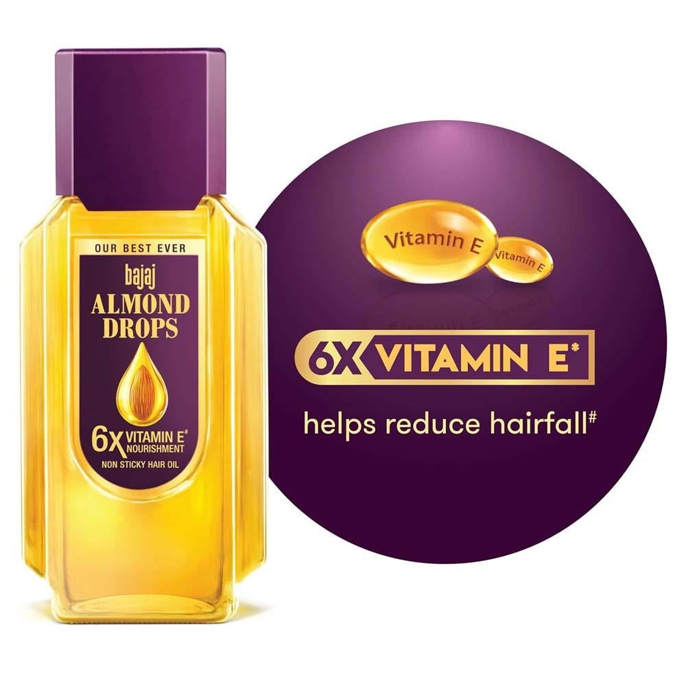 Non-sticky hair oil with almond oil from Bajaj is an effective product designed to nourish and moisturize the hair without leaving a greasy residue. It contains natural almond oil, which is a rich source of vitamins and minerals that promote scalp health and promote hair growth.