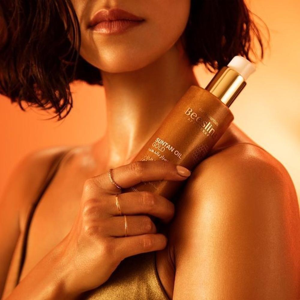 Beesline Gold Tanning Oil is rich in vitamins, antioxidants, and moisturizing properties.
