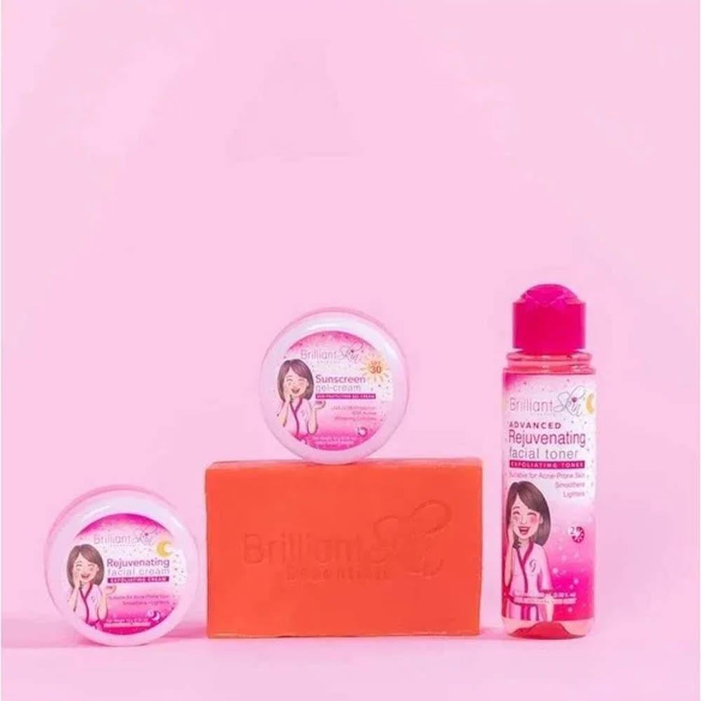 Indulge in Brilliant Skin’s rejuvenating skincare set, designed to brighten, refine texture, and reduce imperfections, thanks to its powerful blend of natural extracts and exfoliating acids!